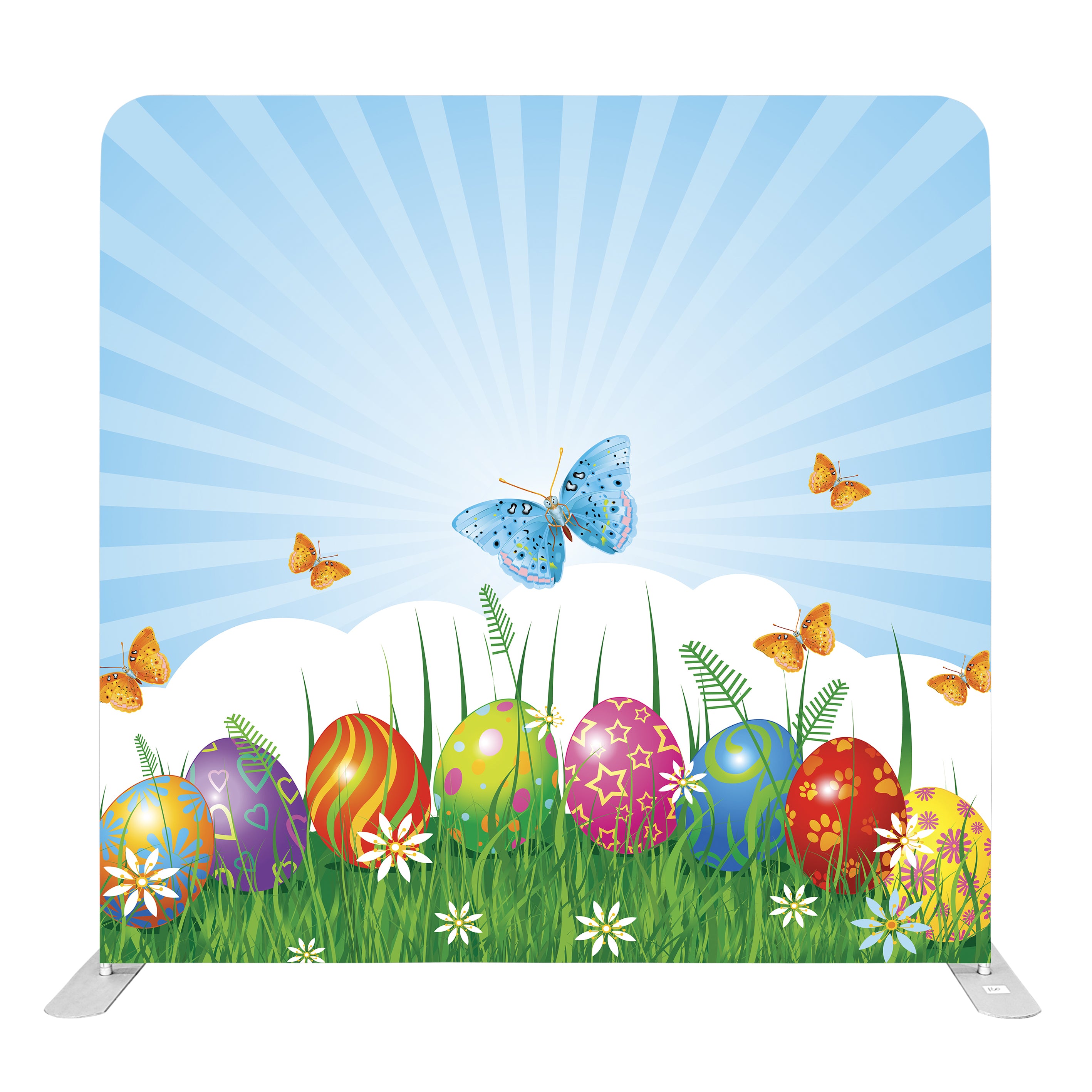 (#137) 8ft x 8ft Colorful Easter Eggs Pillow Tension Fabric Backdrop Rental Per Day